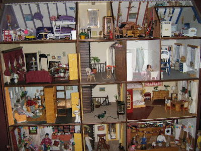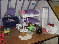 Beginnend met de poppenhuis bovenverdieping, van links naar rechts: de meidenslaapkamer.