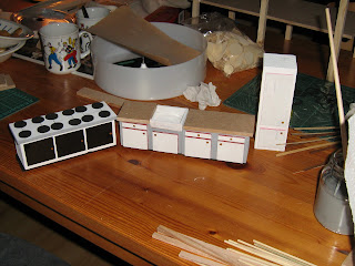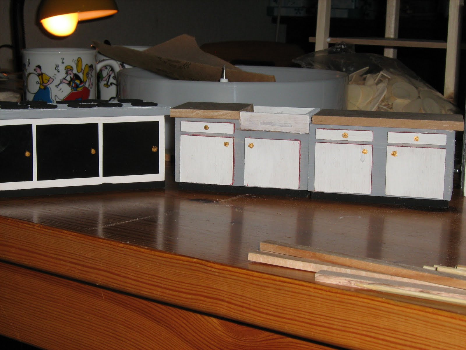 Het fornuis met ovens en het keukenblok zijn van blokken hout gemaakt. Net zoals de krukken waar de Pieten op kunnen zitten.