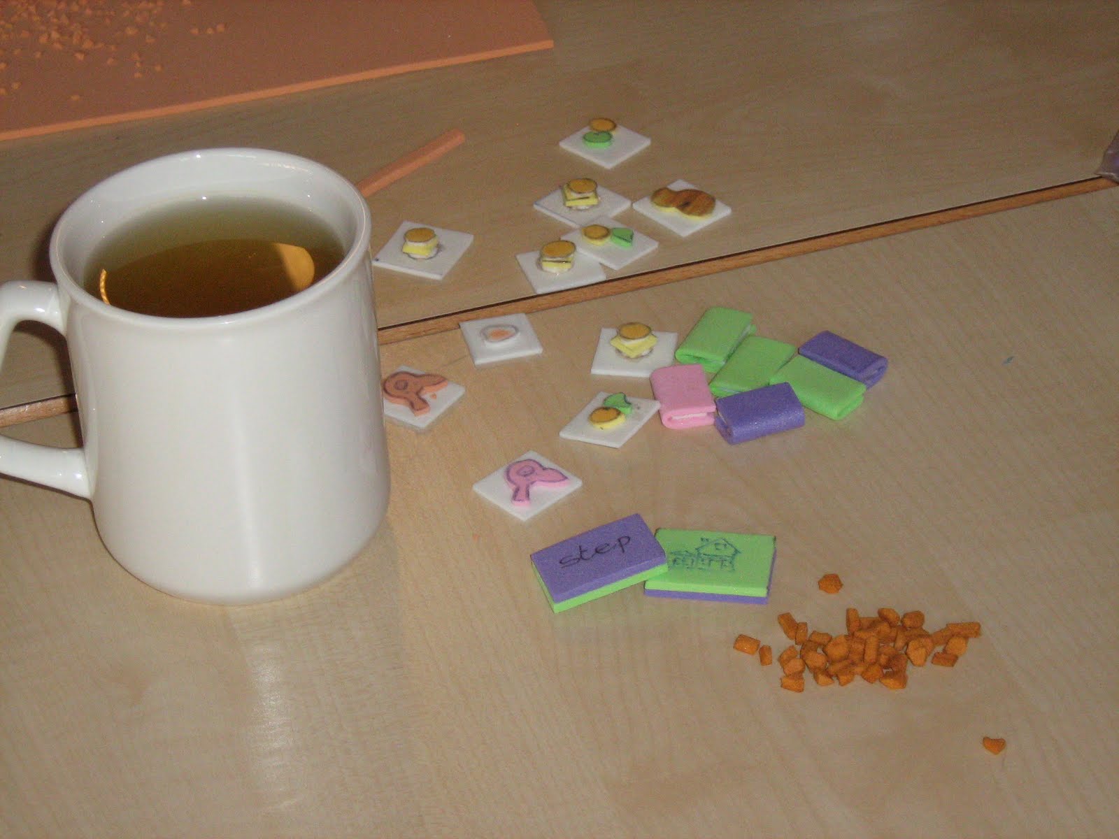 Op de foto met de theebeker zijn ‘ingepakte chocoladeletters’ te zien, want ja, het blijft voor een school, dus ook leerzame kant kwam aan bod. Dit is gemaakt van rubber, en het hoopje kleine friemeltjes moeten pepernoten voorstellen.