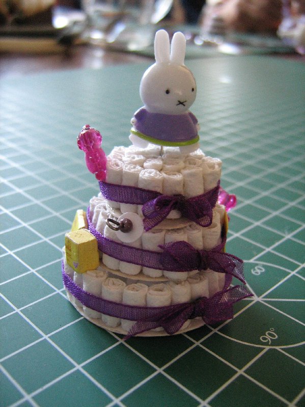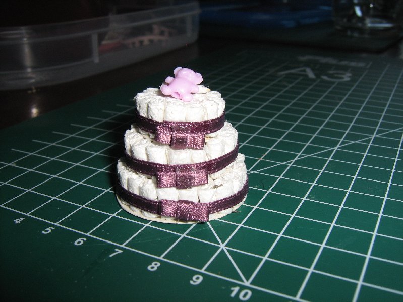 De poppenhuizen luiertaart is een leuke aanwinst voor de poppenhuizen babykamer/babywinkel en makkelijk te maken!