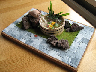 Van het grootste gedeelte van de steentjes die ik overhad, heb ik toch een kleine uitbreiding gemaakt aan het tuintje van Gepetto. Het tuintje bestaat nu uit 2 delen, zodat ik het gemakkelijker kan wegzetten.